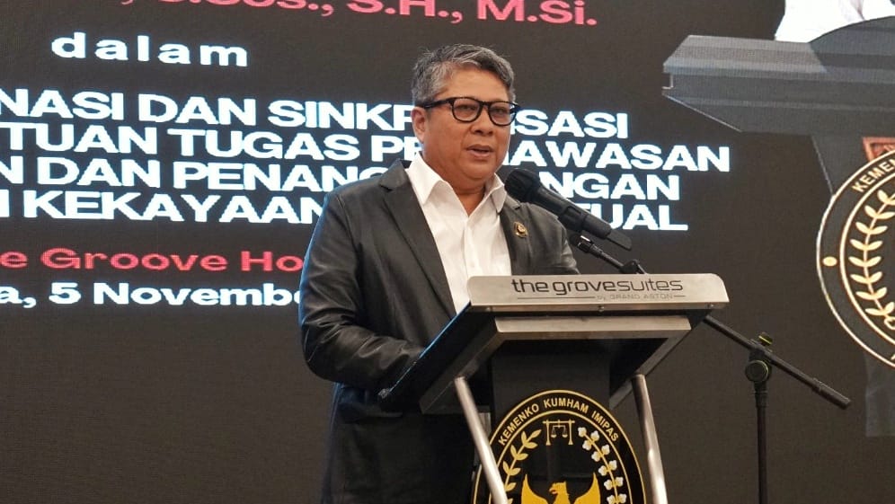 Dalam sambutannya, Deputi Bidang Koordinasi Hukum Kemenko Kumham Imipas Nofli, menegaskan bahwa pembentukan satuan tugas (satgas) lintas sektor ini merupakan langkah strategis untuk menjawab tantangan penegakan hukum KI yang selama ini masih berjalan secara terpisah.