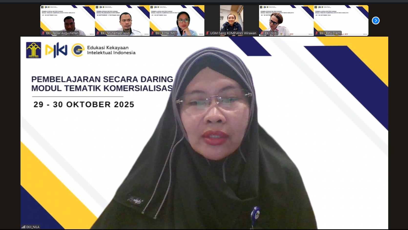 Jakarta — Edukasi Kekayaan Intelektual Indonesia (EKII) kembali hadir sebagai wadah pembelajaran strategis bagi para analis kekayaan intelektual (KI). Melalui modul “Komersialisasi KI”, sebanyak 39 analis KI Ahli Muda dan Ahli Madya di lingkungan DJKI Pusat mengikuti pembelajaran daring pada 29–30 Oktober 2025 untuk memperdalam pemahaman mengenai nilai ekonomi dan strategi pemanfaatan KI.