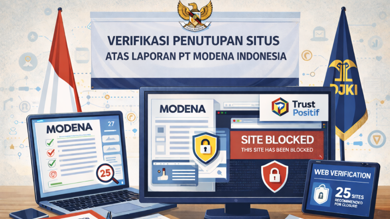 Direktorat Jenderal Kekayaan Intelektual (DJKI) Kementerian Hukum melalui Direktorat Penegakan Hukum melaksanakan kegiatan Verifikasi Penutupan Situs atas laporan dari PT Modena Indonesia pada Jumat, 20 Februari 2026. Kegiatan yang dilakukan oleh Tim Verifikasi DJKI ini berlangsung secara daring. Hal ini merupakan tindak lanjut atas pengaduan dugaan pelanggaran hak cipta dan/atau hak terkait serta peredaran produk palsu yang mengatasnamakan perusahaan tersebut.