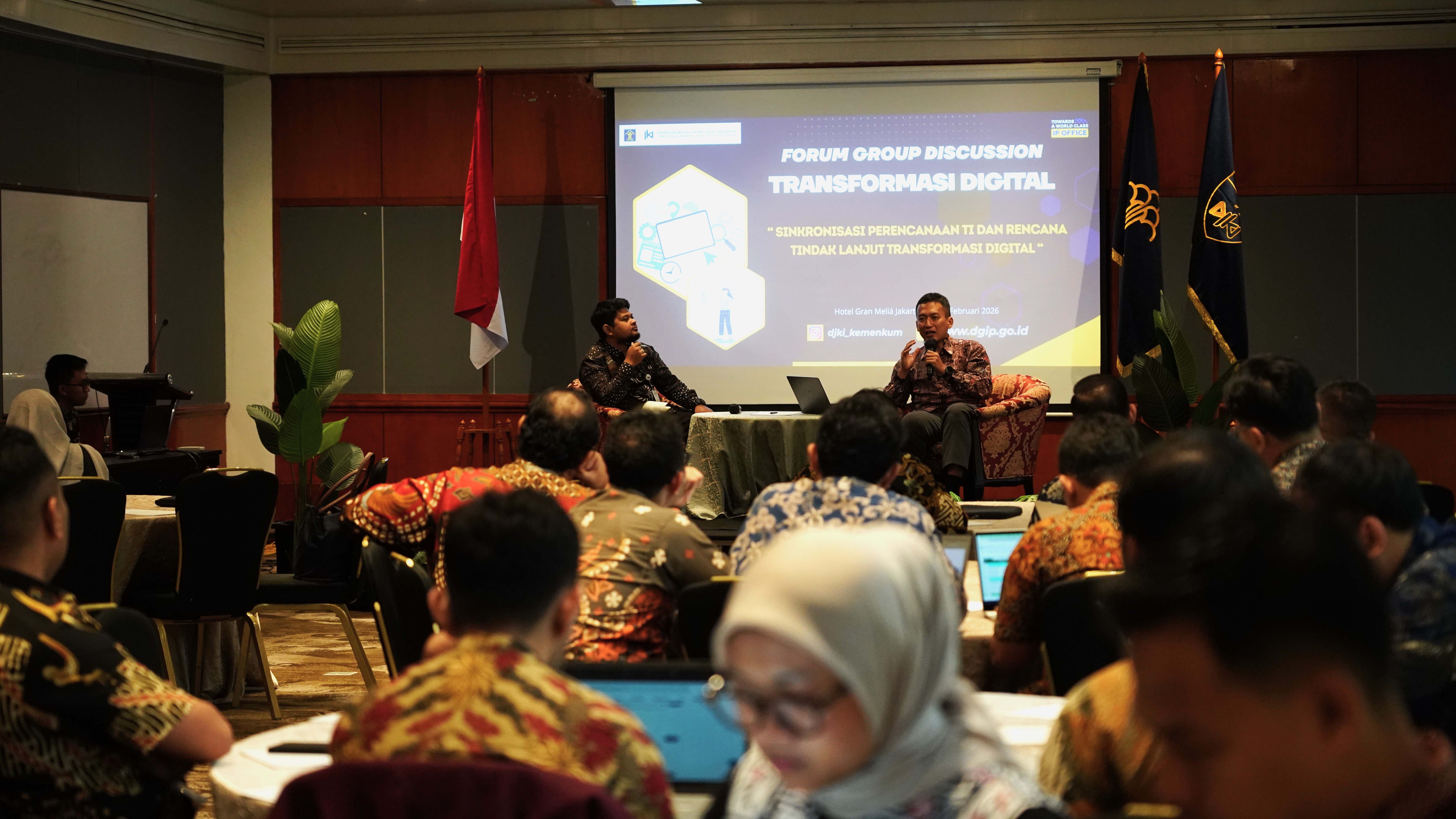 Jakarta – Direktorat Jenderal Kekayaan Intelektual atau DJKI Kementerian Hukum menggelar Focus Group Discussion (FGD) bertujuan untuk Sinkronisasi Perencanaan Teknologi Informasi dan Rencana Tindak Lanjut Transformasi Digital dalam memperkuat kualitas layanan dan pelindungan kekayaan intelektual (KI) yang berlangsung dari tanggal 18 s.d 21 Februari 2026 di Hotel Grand Melia Jakarta.