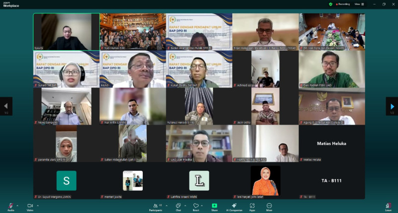 Direktorat Jenderal Kekayaan Intelektual (DJKI) Kementerian Hukum menghadiri Rapat Dengar Pendapat Umum (RDPU) dengan Dewan Perwakilan Daerah Republik Indonesia (DPD RI) secara daring melalui Zoom Meeting. Rapat ini digelar sebagai tindak lanjut aduan Badan Eksekutif Mahasiswa (BEM) Fakultas Sastra, Budaya, dan Komunikasi Universitas Ahmad Dahlan (UAD) terkait penarikan royalti oleh Lembaga Manajemen Kolektif Nasional (LMKN) pada acara Connectica Fest, yang merupakan luaran akademik dari mata kuliah Event Management dan bersifat pendidikan, bukan komersial.