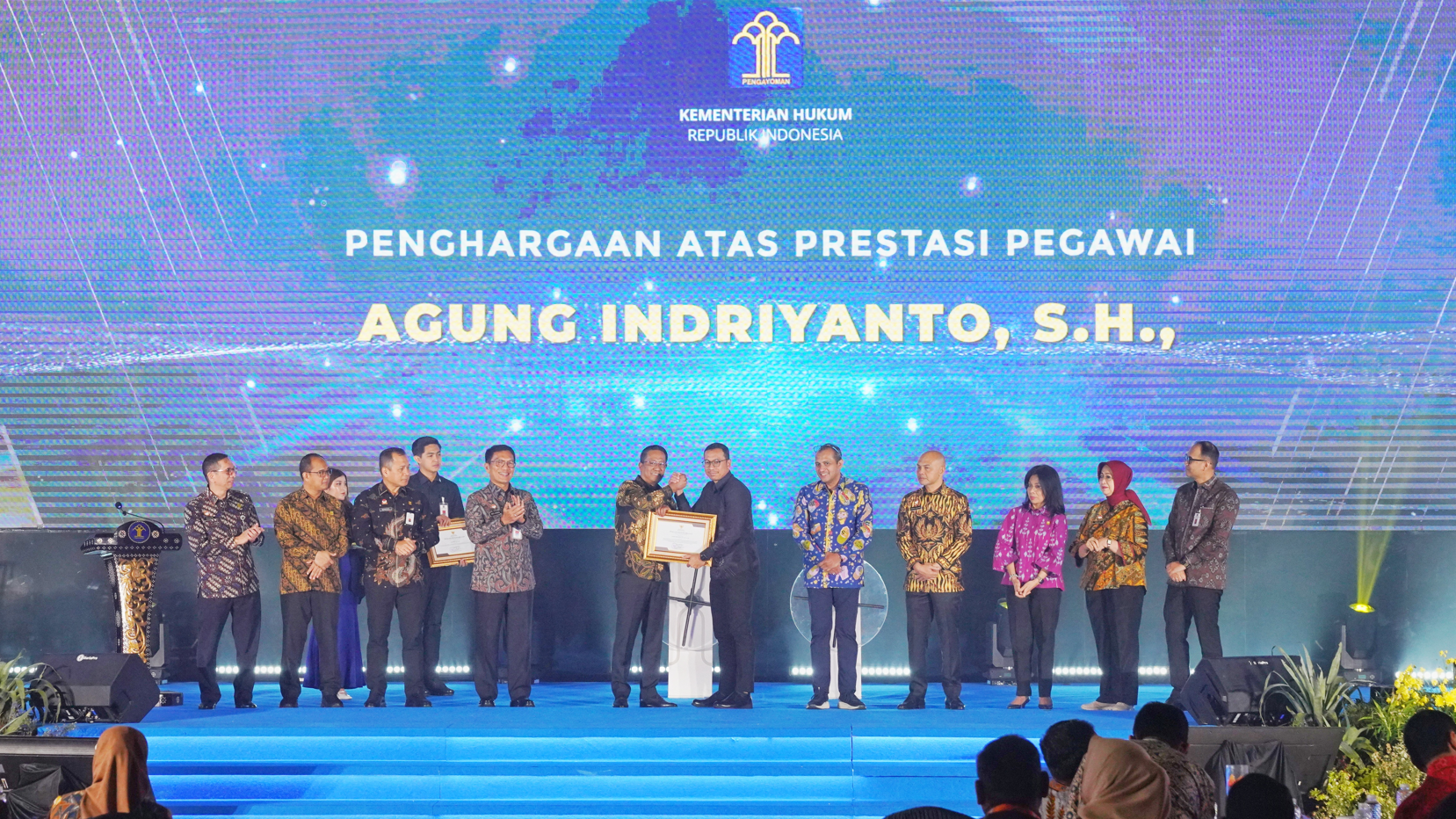 Sebagai informasi, pada kegiatan tersebut Menteri Hukum memberikan penghargaan atas kinerja atas dedikasi seluruh jajaran yaitu kantor wilayah terbaik dan pegawai berprestasi. Salah satu penerima penghargaan berasal dari DJKI, yakni Agung Indriyanto selaku Ketua Tim Kerja Pemeriksaan Substantif Merek DJKI. (SGT/IWM)