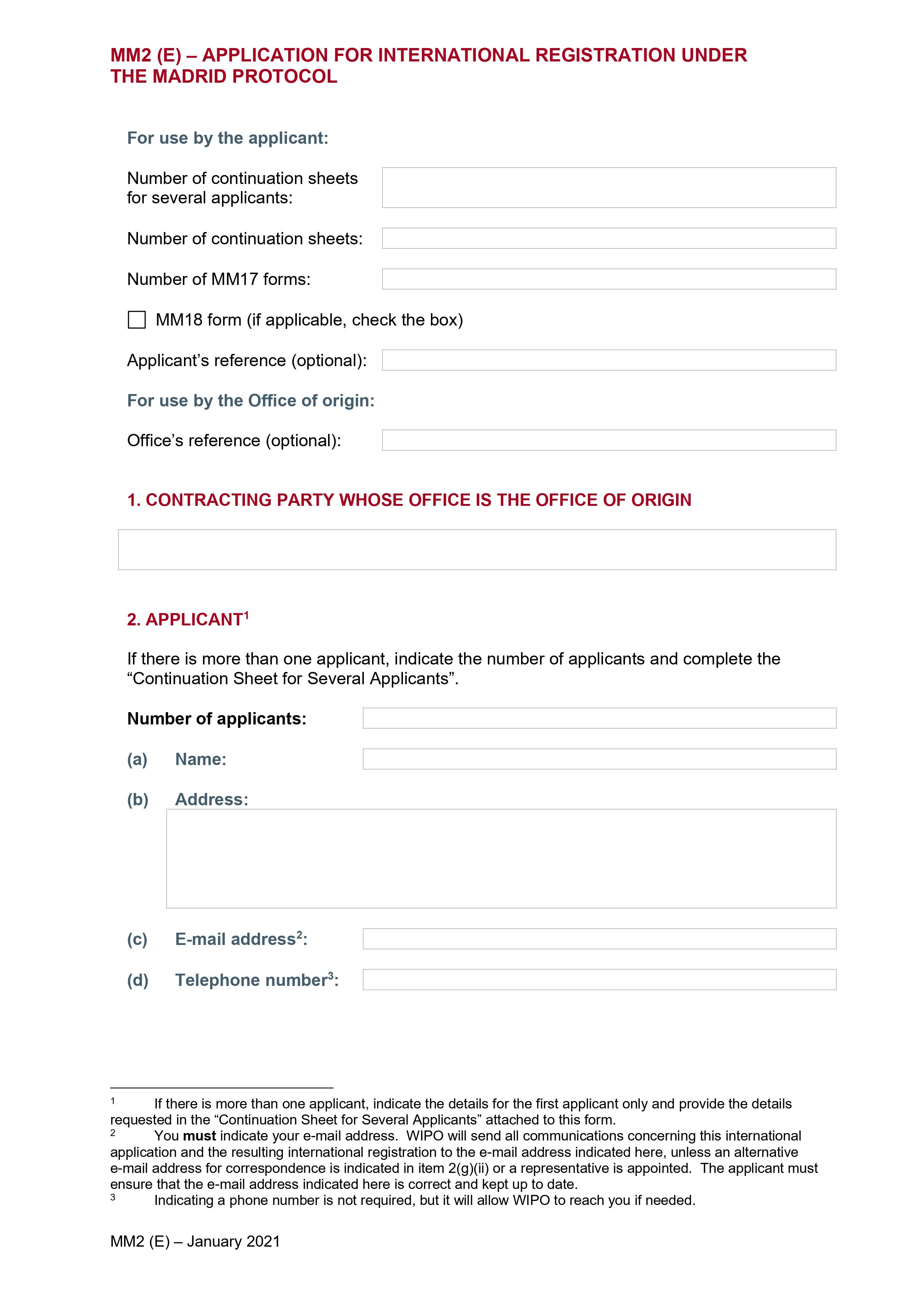Form MM2 (Madrid Agreement Concerning the International Registration of Marks)