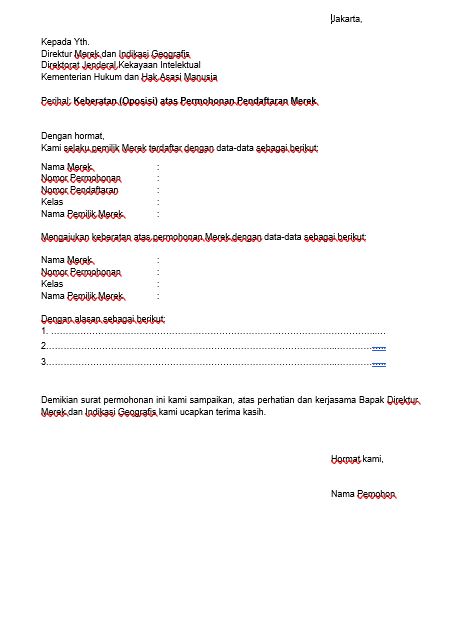 15 Surat Permohonan Status Merek