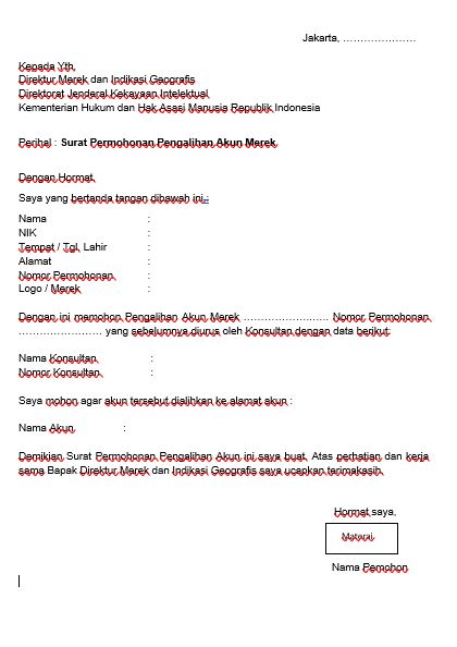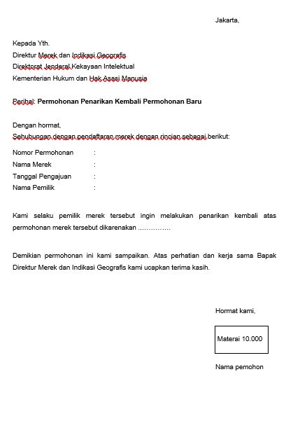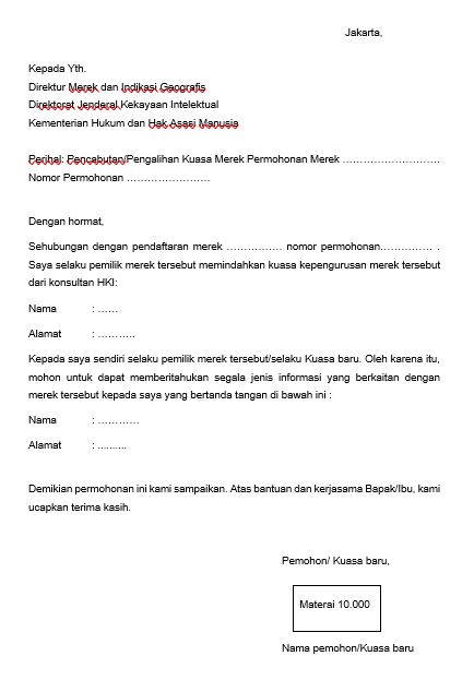 20 Surat Permohonan Pengalihan Akun Merek Bermaterai