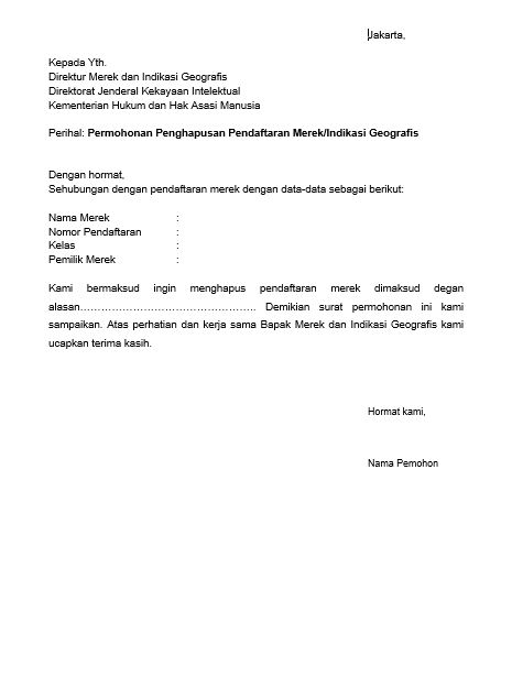 6 Surat Permohonan Penghapusan Pendaftaran Merek Indikasi Geografis
