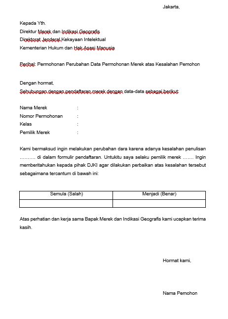 7 Surat Pengantar Permohonan Perubahan Data Permohonan Merek atas Kesalahan Pemohon