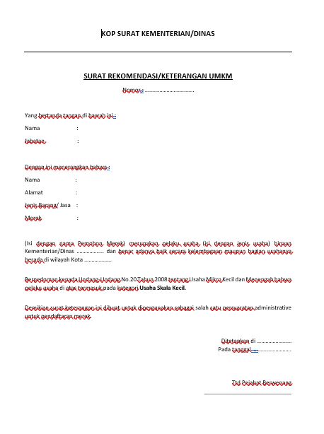 1 Surat Rekomendasi atau Keterangan UMKM
