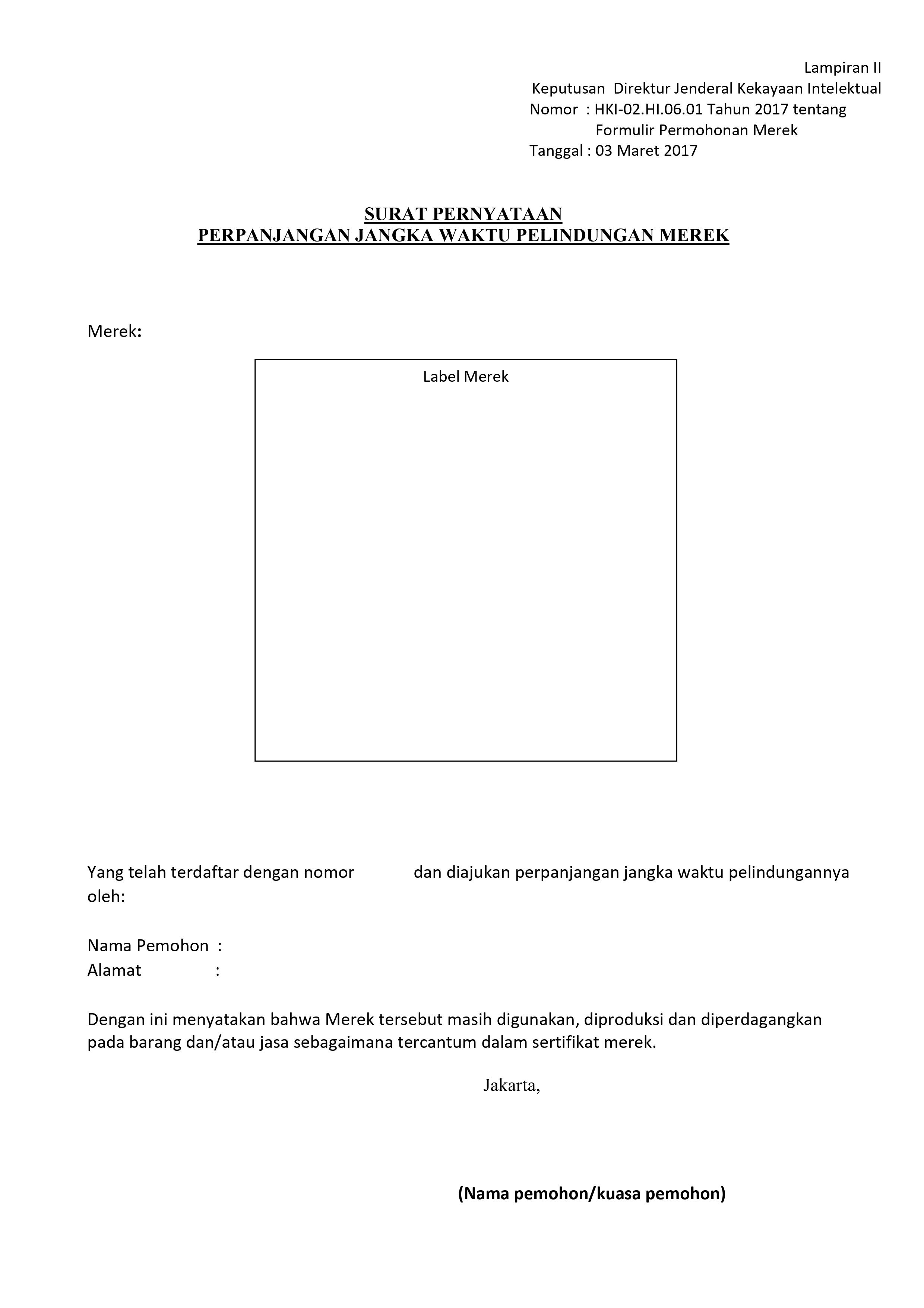 Surat Pernyataan Perpanjangan Jangka Waktu Pelindungan Merek