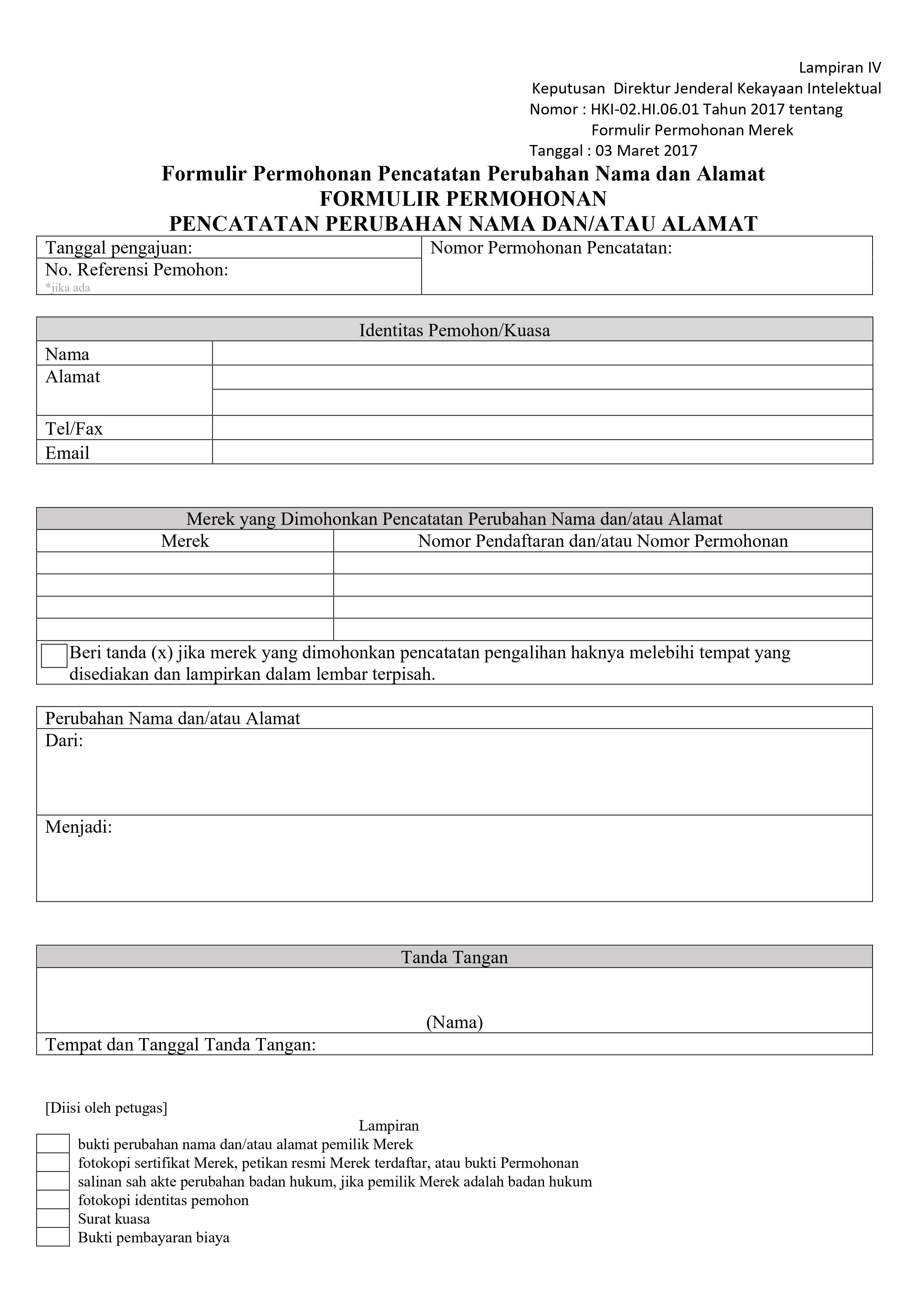 Formulir Permohonan Pencatatan Perubahan Nama dan Alamat