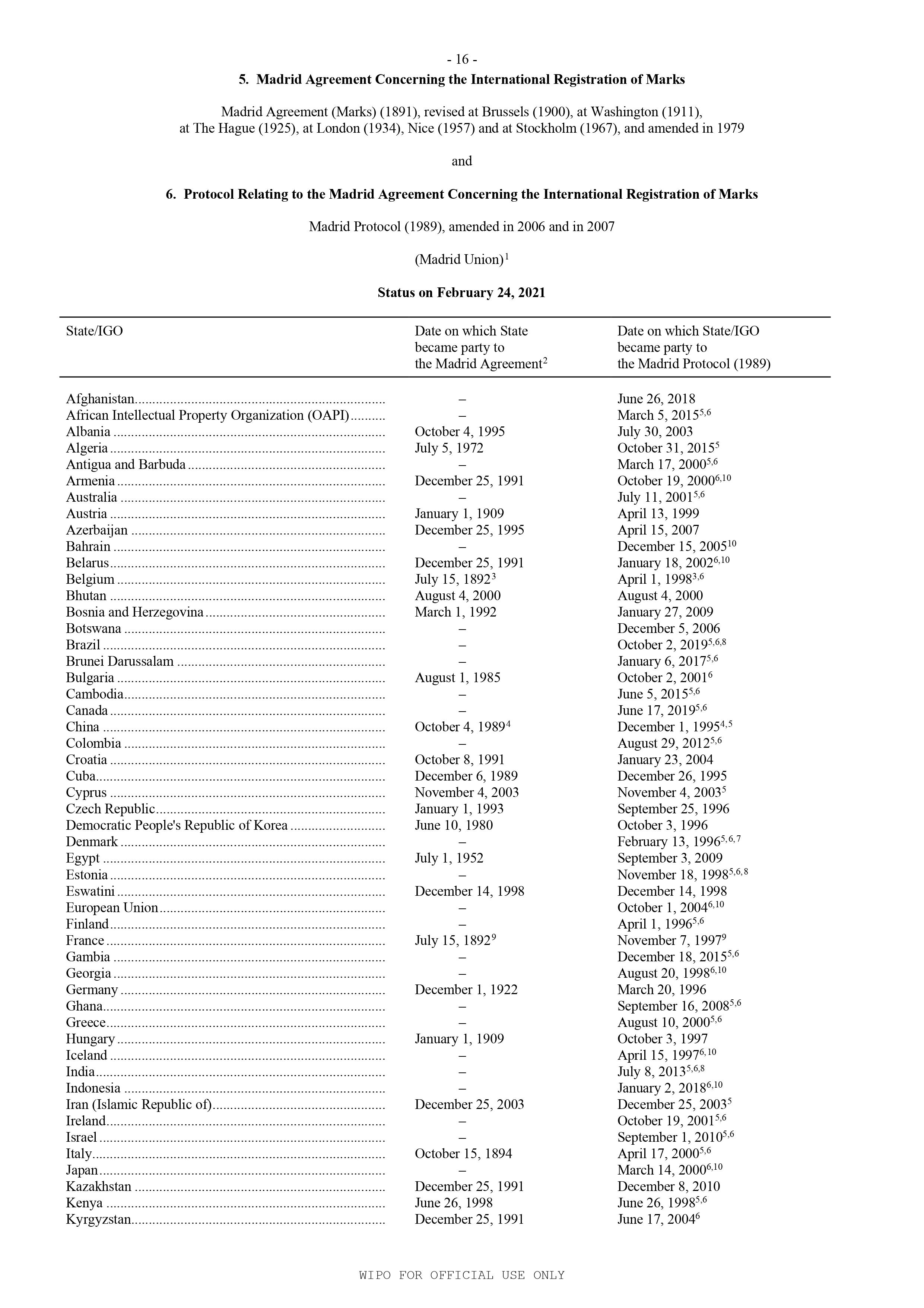 Daftar Negara (Madrid Protocol)