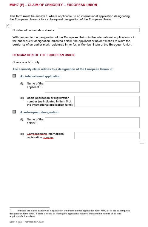 Form MM17 (Madrid Agreement Concerning the International Registration of Marks) - Negara Uni Eropa