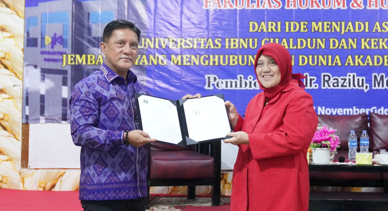 Dalam kesempatan yang sama, DJKI dan Universitas Ibnu Chaldun menandatangani Perjanjian Kerja Sama (PKS) mengenai penguatan Tridharma Perguruan Tinggi serta pelindungan dan pemanfaatan KI. DJKI juga meresmikan Sentra KI Universitas Ibnu Chaldun sebagai pusat layanan konsultasi dan pendampingan pendaftaran KI bagi sivitas akademika. Kehadiran Sentra KI diharapkan menjadi langkah strategis bagi UIC dalam membangun budaya inovasi berbasis pelindungan KI.