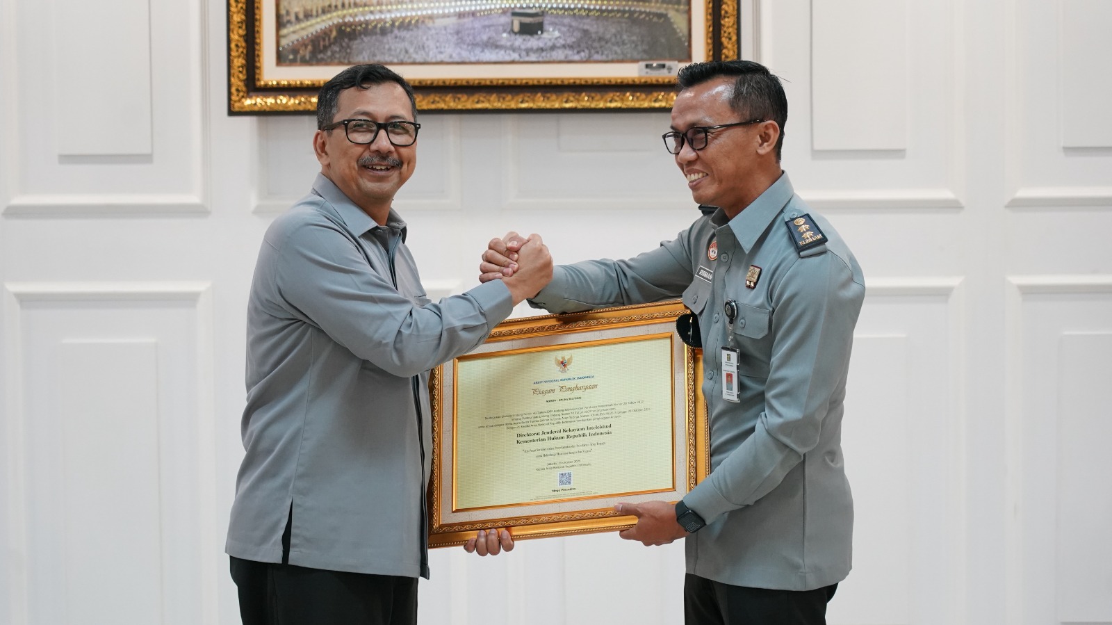 Dalam kesempatan yang sama, diserahkan piagam penghargaan arsip terjaga DJKI tahun 2025, yang sebelumnya diterima dari Kepala Arsip Nasional Republik Indonesia (ANRI) kepada Kementerian Hukum pada tanggal 30 Oktober 2025. Arsip terjaga tersebut merupakan arsip Kekayaan Intelektual Komunal, yaitu arsip negara yang berkaitan langsung dengan keberadaan dan kelangsungan hidup bangsa dan negara yang harus dijaga keutuhan, keamanan, dan keselamatannya.