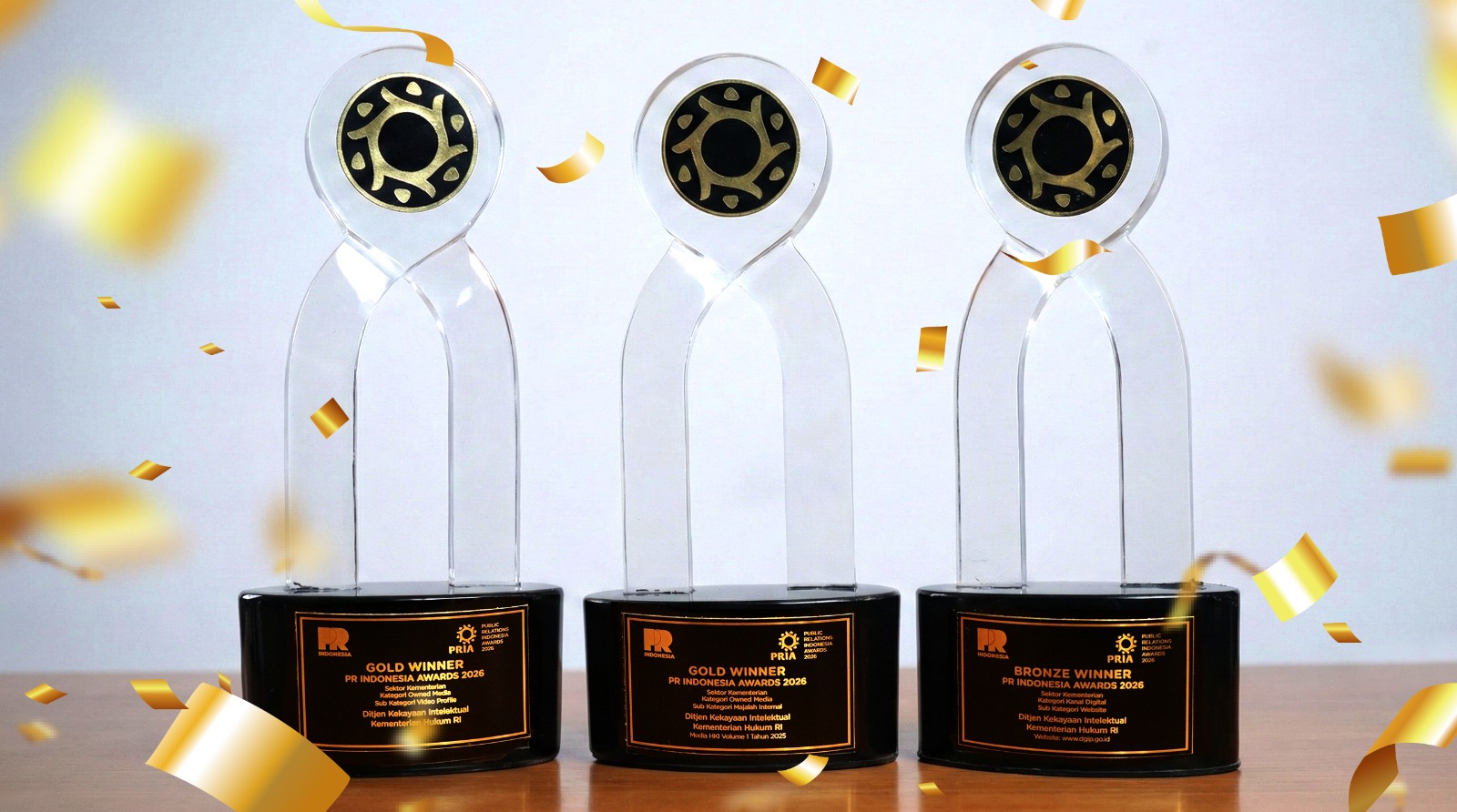 Yogyakarta – Direktorat Jenderal Kekayaan Intelektual (DJKI) Kementerian Hukum meraih tiga penghargaan pada ajang PR Indonesia Awards (PRIA) 2026 yang di gelar di Yogyakarta Jumat, 13 Februari 2026. DJKI mendapatkan Gold Medal kategori Video Profil, Gold Medal kategori Media HKI, serta Bronze Medal kategori Website dgip.go.id. Capaian ini menjadi pengakuan atas kinerja DJKI dalam menyampaikan informasi dan edukasi kekayaan intelektual (KI) kepada masyarakat.