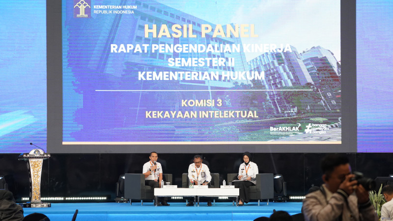 Sekretaris Direktorat Jenderal Kekayaan Intelektual (DJKI) bersama jajaran pimpinan tinggi di lingkungan DJKI menghadiri Rapat Pengendalian Kinerja Semester Dua Kementerian Hukum yang digelar di Hotel Grand Mercure Kemayoran pada 17 Desember 2025. Kehadiran Sekretaris DJKI dalam forum ini sekaligus untuk menyaksikan finalisasi panel hasil pembahasan Komisi III Bidang Kekayaan Intelektual.