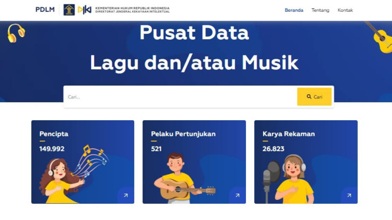 Direktorat Jenderal Kekayaan Intelektual (DJKI) memperkenalkan pengembangan terbaru Pusat Data Lagu dan Musik (PDLM) melalui laman pdlm.dgip.go.id yang kini hadir dengan jumlah data yang telah terintegrasi dengan Lembaga Manajemen Kolektif (LMK) serta tampilan antarmuka yang lebih ramah pengguna. Pusat data ini merupakan implementasi pasal 5–7 Peraturan Pemerintah Nomor 56 Tahun 2021 (PP 56/2021) tentang Pengelolaan Royalti Hak Cipta Lagu dan/atau Musik.