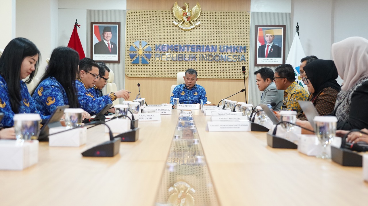 Jakarta - Direktorat Jenderal Kekayaan Intelektual (DJKI) Kementerian Hukum melakukan audiensi lanjutan bersama Kementerian Usaha Mikro, Kecil, dan Menengah (UMKM) pada Kamis, 7 Agustus 2025 di Gedung SMESCO Indonesia. Kegiatan ini bertujuan untuk menjajaki peluang pemanfaatan sertifikat Kekayaan Intelektual (KI) dalam skema Kredit Usaha Rakyat (KUR) tanpa agunan.