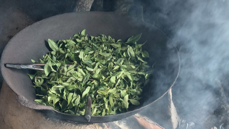 Proses pengolahannya pun tetap setia pada cara lama. Daun pucuk dipetik, dilayukan, digulung dengan tangan, lalu disangrai menggunakan kayu bakar endemik setempat. Asap tipis dan panas kayu memberi sentuhan akhir pada aroma yang sulit ditiru oleh mesin modern.