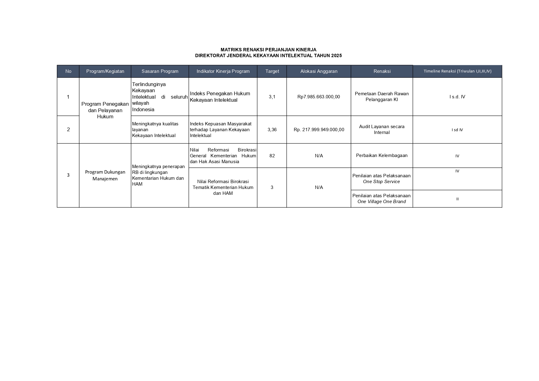Rencana Aksi Atas Perjanjian Kinerja 2025