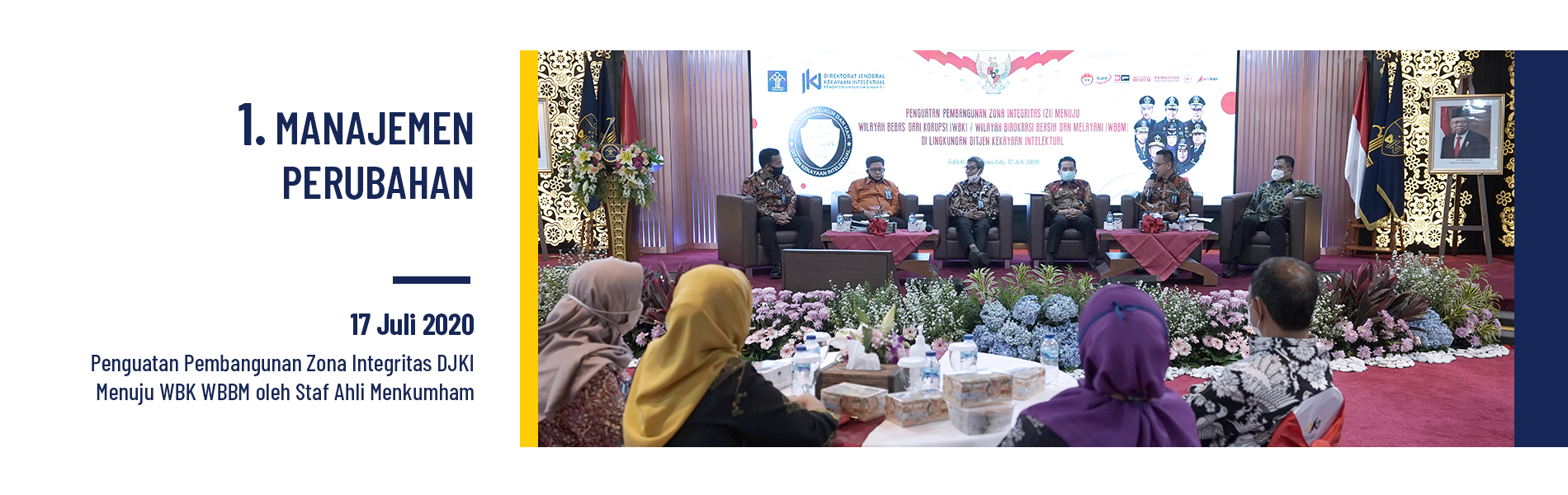 Pada tahun ini Kemenkumham kembali mengusulkan pembangunan Zona Integritas (ZI) 520 Satuan Kerja (Satker) kepada Kementerian Pendayagunaan Aparatur Negara dan Reformasi Birokrasi (KemenPANRB) selaku Tim Penilai Nasional, termasuk di dalamnya Direktorat Jenderal Kekayaan Intelektual. Setelah sebelumnya pada tahun 2019 Direktorat Hak Cipta & Desain Industri DJKI berhasil mendapatkan predikat Wilayah Bebas dari Korupsi (WBK).